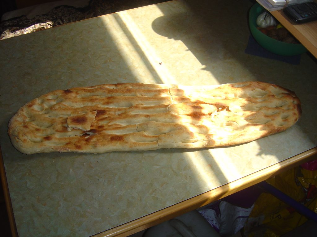 Na de Engelse les mee naar het huis van zijn broer. Dat bleek een hele grote kamer te zijn (wellicht was er meer, maar dat kreeg ik niet te zien). Geen enkel meubel stuk, maar dan ook helemaal niks, op een kachel en een tv na, moest op de grond zitten, en na een kwartier werd er een tafelzeil op de grond gespreid, er kwam kip met rijst aan (erg lekker), hele vieze zure groente (had ik niet verwacht, het zag er lekker uit, en na de eerste hap…..) en het immer brood cq pannenkoekjes. Het was er erg warm door een op volle toeren draaiende gaskachel en dat in combinatie met het eten maakte me erg slaperig. Had de avond ervoor ook niet echt geslapen, en na het eten moest ik alle luciferhoutjes onder mijn oogleden zetten om niet in slaap te vallen. Na een half uurtje maakte ik kenbaar weg te gaan, het was al half 11, maar er kwam nog dessert aan met wat fruit en yoghurt, en om 11 uur reed ik , begeleid door de monteur in zijn Renaultje, terug naar het industrie terrein om mijn auto te parkeren voor de nacht, dat was immers vlak bij de oprit van de snelweg. Heerlijk geslapen in Zanjan.