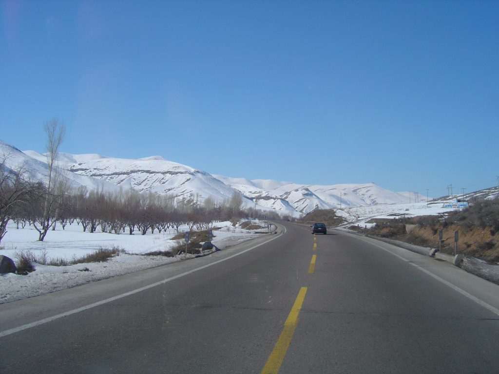 Het is vandaag vrijdag dus toch alles dicht, laten we er maar een rij daggie van maken. Doel… Yazd. Vroeg vertrokken want het tijdsverschil had ik toch nog steeds niet verwerkt. 7:40 reed ik weg (Km stand 137702, het is koud, het heeft gevroren vannacht en het is bewolkt (en ik verwacht regen). Tja, wat moet ik vertellen, het was een saaie koude dag. De weg sneakte langzaam naar 2500 meter, de besneeuwde toppen waren op aanraakafstand zowat, de auto was niet warm te krijgen en de vele checkpoints hielden erg op, dan weer politie, dan weer leger. Iedereen houd me hier weer aan omdat ze de auto willen zien, ben maar begonnen om te zeggen dat ik een levensgevaarlijk hond heb, maar dan willen ze de hond zien (maar komen tenminste niet mijn auto binnen).