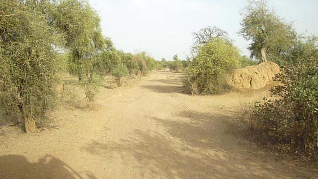 Als je op de kaart kijkt, kan je bij Diamou 2 kanten op. Als je er echter zelf bent, klopt die kaart voor geen meter. De weg immers bleef doorgaan richting Sélinnkegni, terwijl het deel richting Mahina niet te vinden was. De afslag zoals die op de kaart stond klopte ook voor geen meter, al mijn gps kaarten waren fout, op een na, Tracks4Africa (maar die ging later op in de fout).