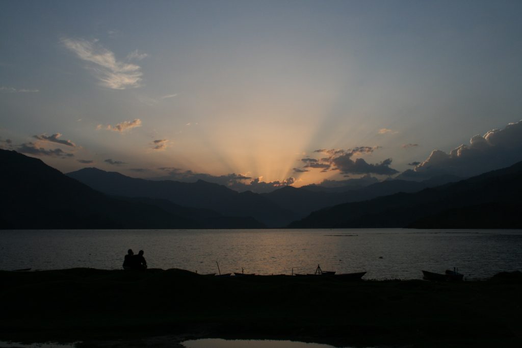 Hier in Pokhara komt nog steeds weinig uit mijn handen. Het regen seizoen is nu definitief aangebroken. Dat betekend elke dag regen, soms een hele dag achtereen. Het komt dan met bakken naar benee, soms vergezeld van hevig omweer of/en windstoten. Het kan erg spoken hier. Gelukkig is alles waterdicht momenteel dus ik vind het allemaal niet zo heel erg. Daarbij zijn de uitzichten over het meer elke dag anders en een lust om naar te kijken.