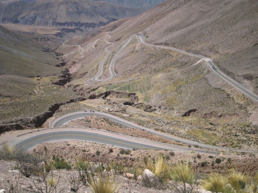 Ondanks al deze bezigheden begon na een week het zitvlees te jeuken. Ik moest nog het Pam&Ries rondje doen, anders kwam ik vast Nederland niet meer in. Op 9 oktober vertrok ik van Salta richting San Antonio de los Cobros. Dat ligt in de bergen en de rit was maar voor een gedeelte geasfalteerd. Waarom, dat snap ik in Argentinië nooit. Prachtige weg, en dan ineens midden in de bergen houd het asfalt op. Of net andersom, klote weg en dan ineens midden in de bergen begint een glad asfaltje. Enfin, de weg steeg gestaag en al gauw reed ik in de zandkleurige en stoffige bergen. Droog, hier en daar cactussen en eigenlijk niet zo heel veel te zien.