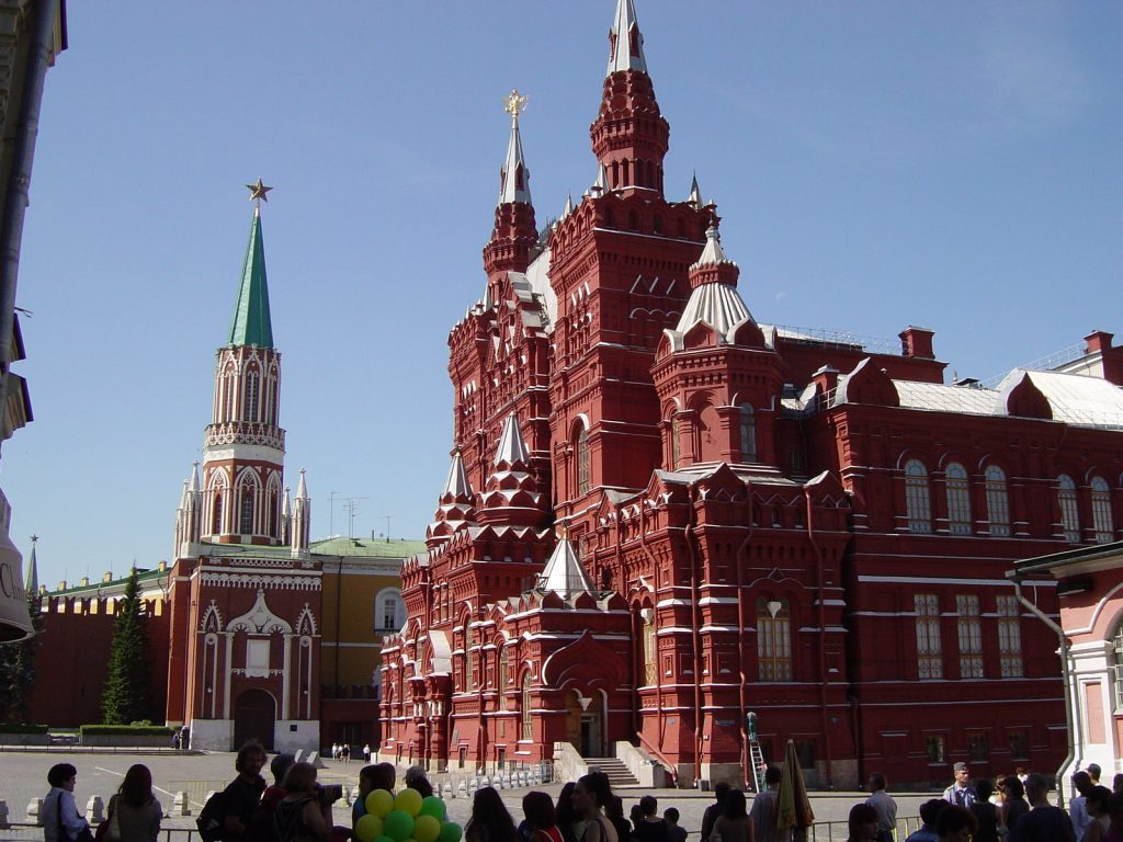 Tja, Moscow, dat is wel wat anders dan St Petersburg. Moscow is meer wat je verwacht van Rusland. Grote lange rijen met betonnen flat kolossen in de buitenwijken, en oude mooie gebouwen in het centrum, hier en daar wel vervallen. Slechte wegen, botte mensen, maar een stad waar erg veel te zien is. Ik verblijf in een mega Hotel, dat geloof ik ooit is gebouwd vanwege de olympische spelen. Het is een Hotel Moscow waardig, 28 verdiepingen hoog, en massaal. En daar staan er dan drie van naast elkaar, aan elkaar gekoppeld. En dit internet café waar ik dan nu zit, is voor het hele Hotel Complex, en telt maar liefst 5 PC’s (oh wat een luxe)