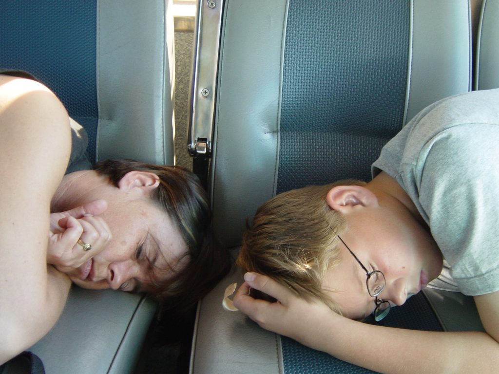 Mijn zus en neefje zijn hier aangeland, om 10 dagen met mij mee te reizen, en na 2 dagen Bangkok, besloten we om de nachtbus naar Koa Sok te nemen, een natuurpark in het zuiden van Thailand. Het zou , volgens de juffrouw achter de bus balie, een rechtstreekse reis zijn, we zouden opgehaald worden, en we zouden slaap stoelen in de bus hebben die bijna helemaal plat zouden kunnen. Goed, je snapt het al….