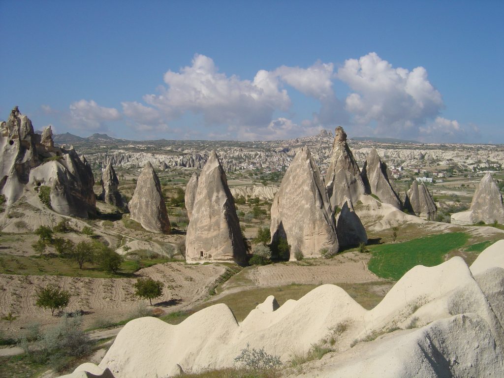 Ik wilde graag de ondergrondse stad van Derinkuyu zien voor ik verder trok. Dit is de diepste stad zover gevonden. Het koste me een uurtje rijden voor ik daar was en onderweg kwam ik weer veel van die rare rots formaties met gaten tegen, de hele grond lijkt hier een grote Zwitserse kaas (met gaten natuurlijk).